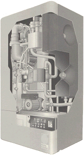 GasbrennwerttechnikUm Wasser zu Verdampfen muß Energie aufgewendetwerden. Kondensiert Dampf zu Wasser, wird die Energie wieder frei. Diesen physikalischen Effekt nutzen Gas- Brennwertgeräte und kondensieren den im Abgas ent- haltenen Wasserdampf zu Kondensat aus. Damit sind Brennwertgeräte herkömmlichen Heizkesseln um ca. 15% in der Energieausbeute überlegen. Unser Paradigma Modula II-Gasbrennwertkessel besitzt eine Leistung von 4-20 kW |